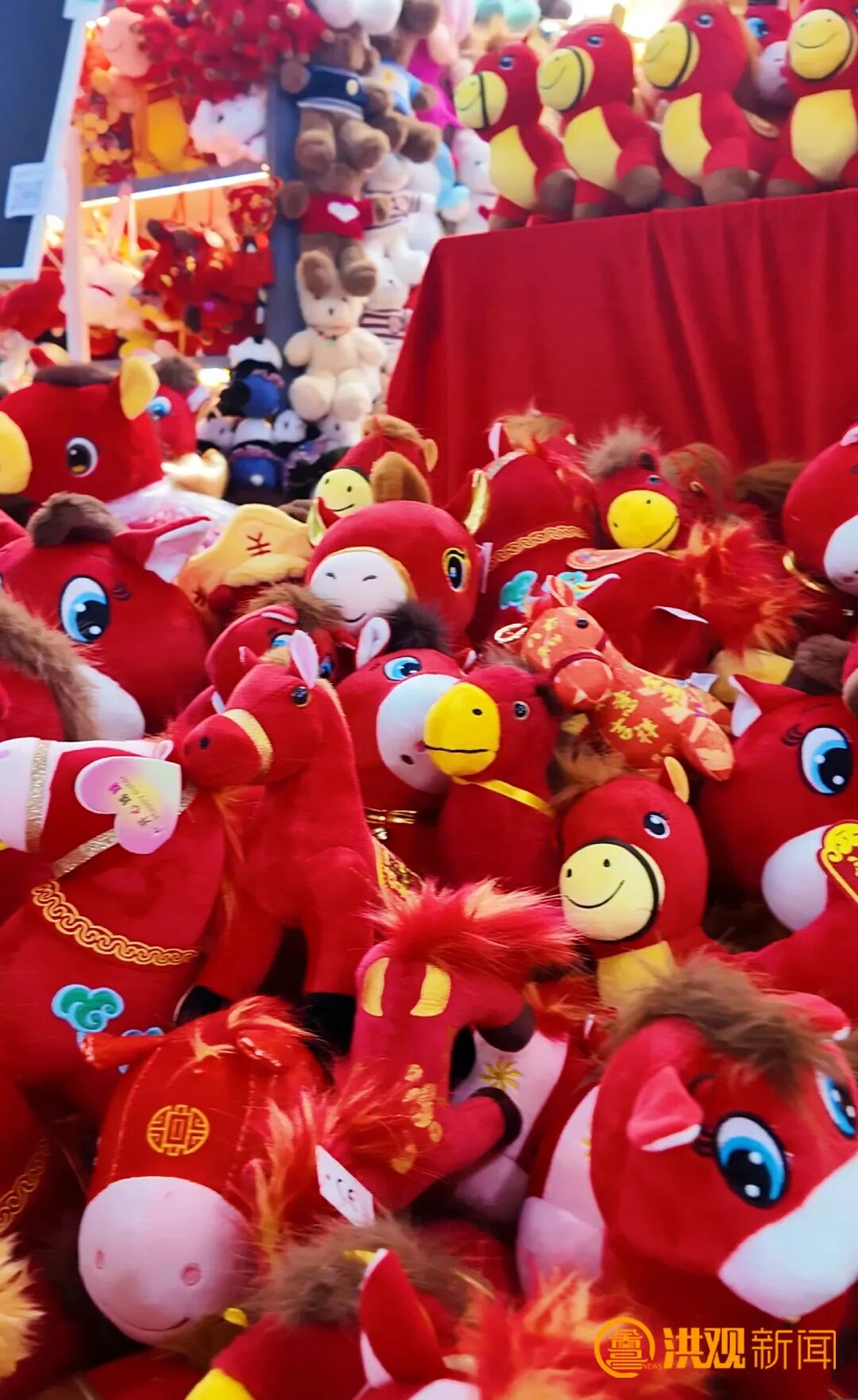 1月28日上午9时许,义乌国际商贸城一区一楼玩具专区,各家商铺陆续开门,年味渐浓。“开心姊妹”玩具店内,红彤彤的马年玩偶琳琅满目,其中“哭哭马”被摆放在最显眼的位置,圆乎乎的身形、耷拉的嘴角,憨态可掬,格外吸睛。